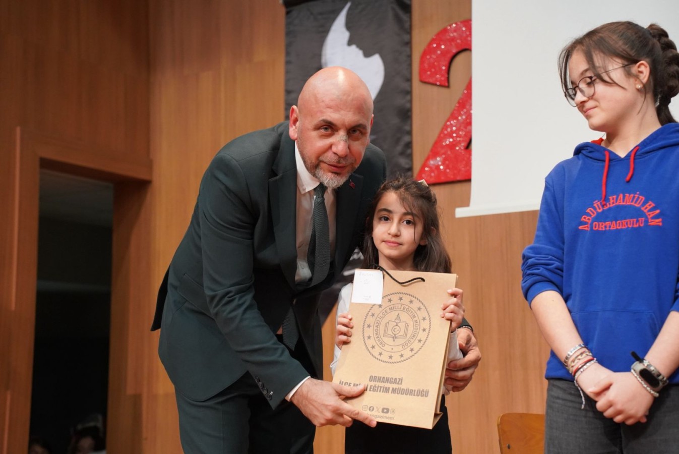 Program Orhangazi Ortaokulu tarafından hazırlandı. İstiklal Marşı ve saygı duruşuyla başlayan etkinlik; protokol konuşmaları, çeşitli kategorilerde dereceye giren öğrencilere ödüllerin takdim edilmesi, şiir dinletileri, günün anlam ve önemini yansıtan kısa tiyatrolar ve duygu dolu oratoryo gösterisiyle sürdü.Kültür ve Gençlik Merkezi’ndeki programda konuşan Belediye Başkanı Bekir Aydın, Öğretmenler Günü’nün yalnızca bir kutlama günü değil, eğitim camiasının fedakârlıkla yoğurduğu emekleri hatırlamak için önemli bir vesile olduğunu vurguladı. Aydın, öğretmenleri yalnızca 24 Kasım’da değil, yılın 365 günü hatırlayan ve onların emeğinin değerini günlük yaşamda hisseden bir anlayışa sahip olduklarını söyledi. Orhangazi’de yaklaşık 13.000 öğrencinin eğitim gördüğünü hatırlatan Aydın, bu başarının ardında sınıflarında birer meşale olan, bilgiyle yoğuran ve evlatları sabırla yetiştiren öğretmenlerin özverisinin bulunduğunu belirtti. Öğretmenlerin sadece ders anlatan kişiler olmadığını, bir milletin kaderine yön veren “gönül mimarları” olduğunu ifade etti. Konuşmasında Başöğretmen Gazi Mustafa Kemal Atatürk’ü saygı, rahmet ve şükranla anan Başkan Aydın, Atatürk’ün “Öğretmenler! Yeni nesil sizin eseriniz olacaktır.” sözünün öğretmenlere duyduğu güçlü güveni ve onlara yüklediği büyük sorumluluğu ortaya koyduğunu dile getirdi. Başkan Aydın, tüm öğretmenlerin Öğretmenler Günü’nü en içten dilekleriyle kutlayarak gösterdikleri özverili çalışmalar için teşekkür etti. Öğretmenler Günü programı, protokolün öğretmenlere yönelik tebrikleri ve öğrencilerin hazırladığı gösterilerin ardından sona erdi.