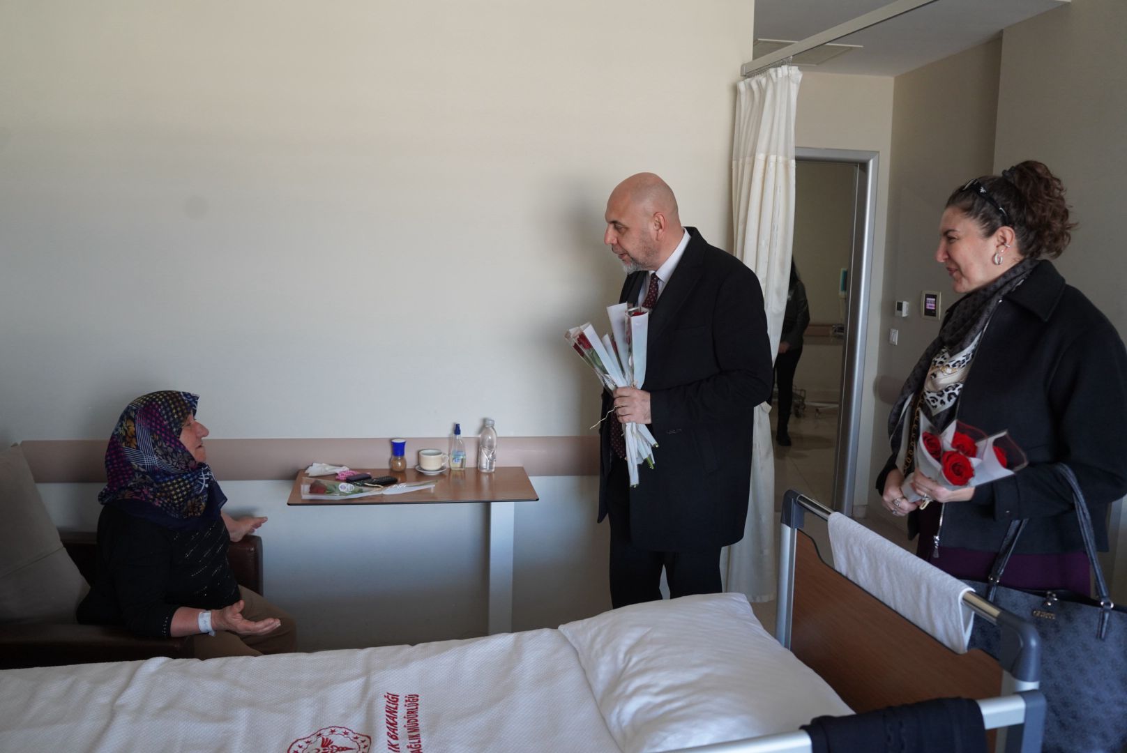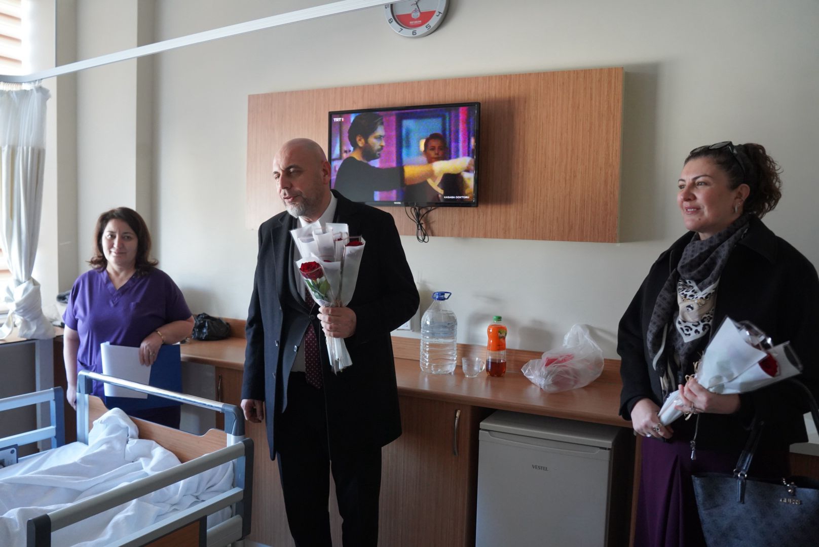 Ziyaretin en anlamlı anları ise çocuk servislerinde yaşandı. Başkan Bekir Aydın ve eşi Kıymet Aydın, minik hastalara hediye ve çiçek takdim ederek onların yüzlerinde tebessüm oluşturdu. Bu samimi anlar, hasta yakınları tarafından da memnuniyetle karşılandı.