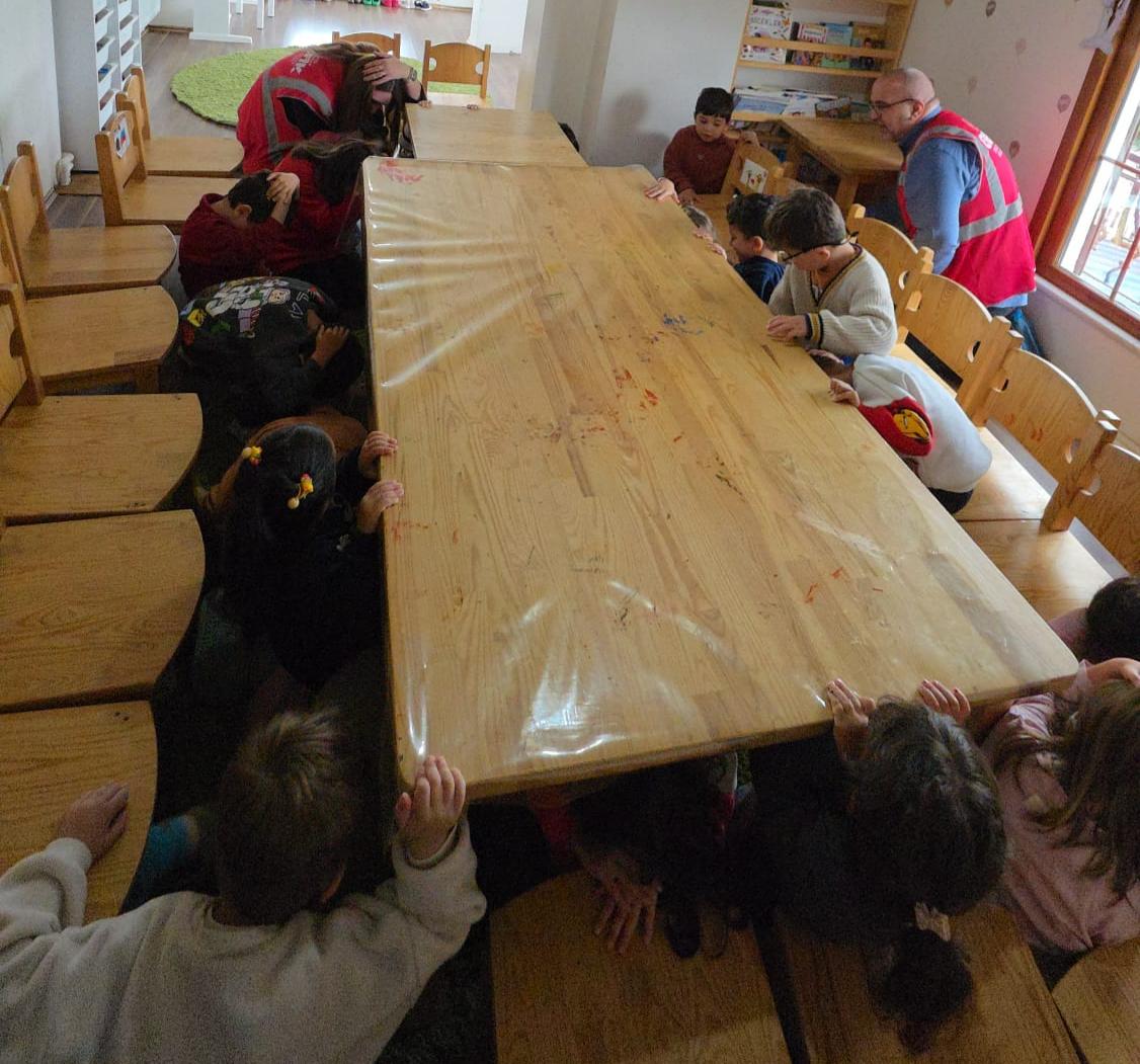Minik Kalpler ve Orman Anaokulu’nda düzenlenen eğitimlerde, çocuklara afet çantası hazırlamanın önemi anlatıldı. Olası bir deprem anında nasıl davranmaları gerektiği, “çök-kapan-tutun” hareketini nerede ve nasıl uygulayacakları, onların yaş gruplarına uygun ve anlayabilecekleri bir dille aktarıldı. Eğitimlerde ayrıca çocuklara, deprem sırasında ve sonrasında aileleriyle ilgili nasıl hareket etmeleri gerektiği de vurgulandı. Bunun yanında bina tahliyelerinin nasıl yapılacağı konusunda küçük ama etkili bir bilgilendirme ve uygulamalı tatbikat da gerçekleştirildi. Programın en dikkat çekici yönlerinden biri ise eğitimin tamamen çocukların dünyasına uygun bir şekilde, oyun tadında verilmesi oldu. Eğitmenler, minik öğrencilerle oyunlar oynayarak hem onları eğlendirdi hem de deprem konusunda temel farkındalık kazanmalarını sağladı. Eğitim, OBAK Sorumlusu Arif Yıldız ile OBAK gönüllüleri Melike Nursen Çamlıdere, Yağmur Kabul ve Mithat Kardaş tarafından verildi. Etkinlikte, afet bilincinin en küçük yaşlardan itibaren oluşturulmasının önemine dikkat çekildi.