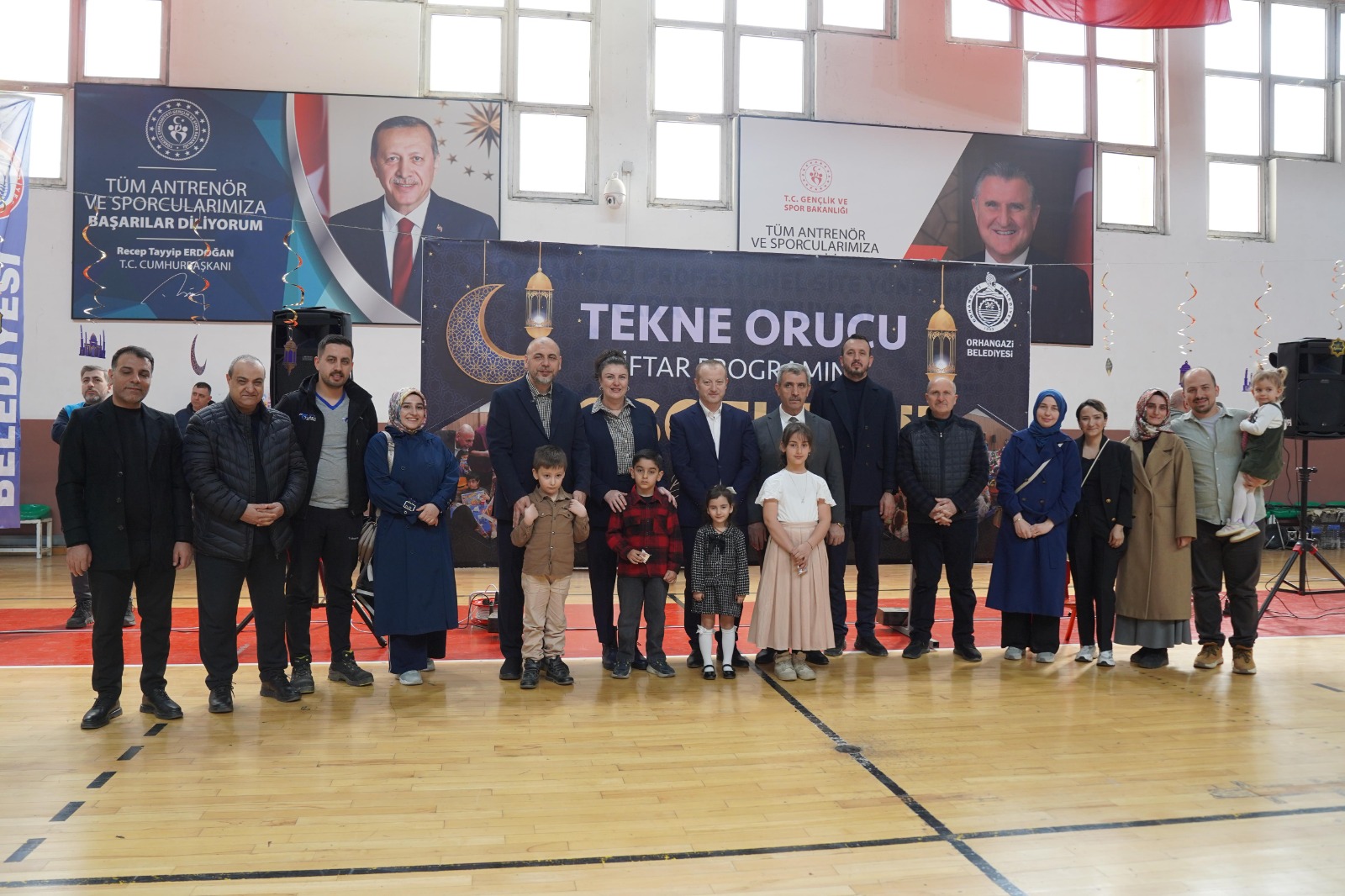 Orhangazi Belediyesi, Ramazan ayının manevi iklimini çocuklarla buluşturmayı sürdürüyor. Geleneksel hale gelen Tekne Orucu İftar Programı, bu yıl da büyük bir coşku ve yoğun katılımla gerçekleştirildi. Orhangazi Kapalı Spor Salonu’nda düzenlenen programda 500 çocuk aynı sofrada buluşarak iftar yapmanın sevincini yaşadı. Belediye Başkanı Bekir Aydın ve eşi Kıymet Aydın’ın ev sahipliğinde gerçekleştirilen programa; Belediye Başkan Yardımcıları Lütfi Bakırdan, İbrahim Altuntaş, Erkan İnce ve Bilal Acar, meclis üyeleri, birim müdürleri ve çok sayıda aile katıldı.